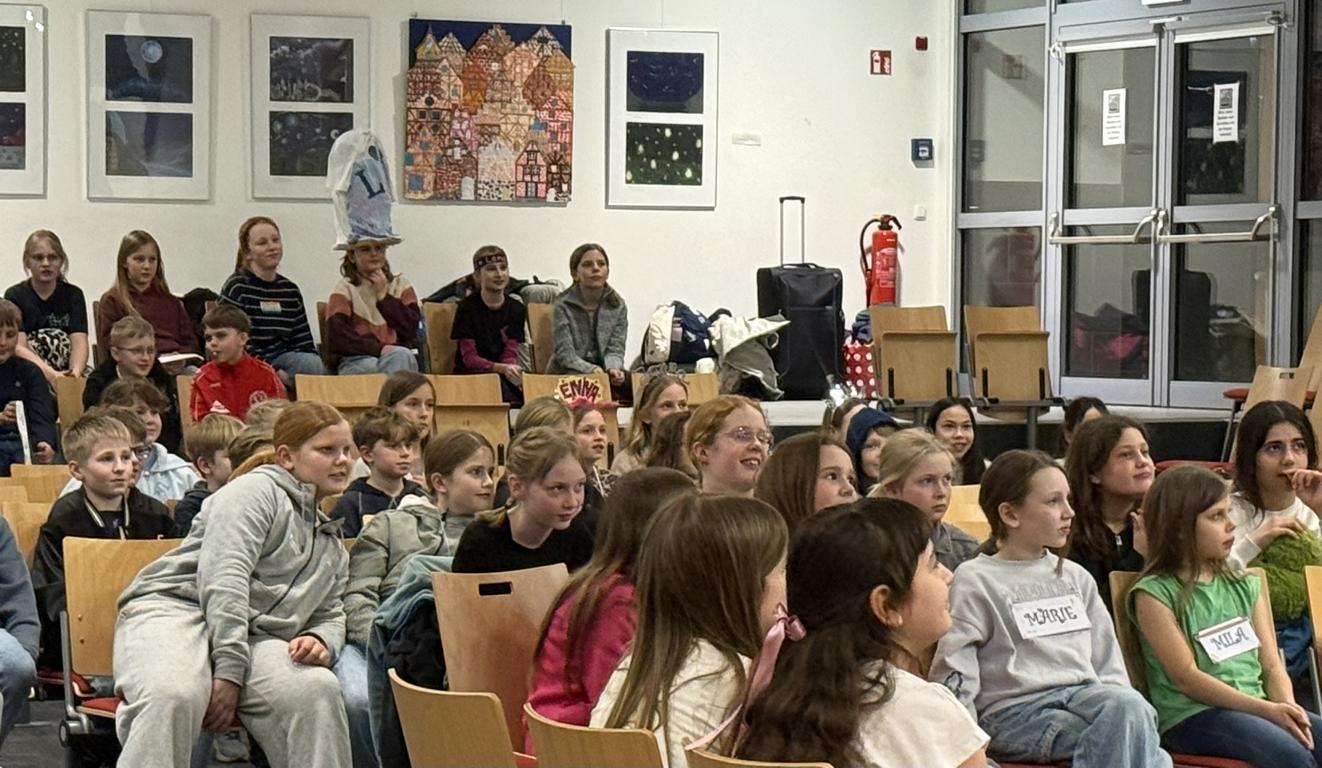 110 Schülerinnen und Schüler aus dem 5. Jahrgang und 35 Teamer aus der Oberstufe kamen am 06.03.2026 abends ins BRG, um dort die Nacht in der Schule zu verbringen. Bis zur Bettruhe wurde in vier liebevoll geschmückten Räumen von Lehrerinnen und Lehrern sowie Henri vorgelesen: Gruseliges, Spannendes, Lustiges, Schönes. Wie ärgerlich, dass manches Mal das Ende offen blieb… Da bleibt nur der Weg in die Bibliothek!
