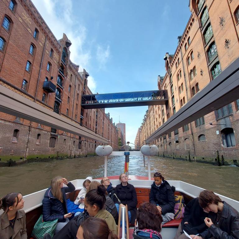 Bei der Exkursion nach Hamburg führten uns die deutschen Austauschpartner entlang verschiedener Stopps durch Speicherstadt und Hafencity zur Elphi mit Besuch auf der Plaza. Nach einem Abstecher im Speicherstadtmuseum ging es für alle auf eine kleine Barkasse namens „Hamburg“, auf der wir von einem Hamburger Urgestein geführt durch den Hafen und die Speicherstadt geschippert wurden. Hierbei entstanden viele Bilder, Videos und Notizen für unser deutsch-französisches Projekt.
