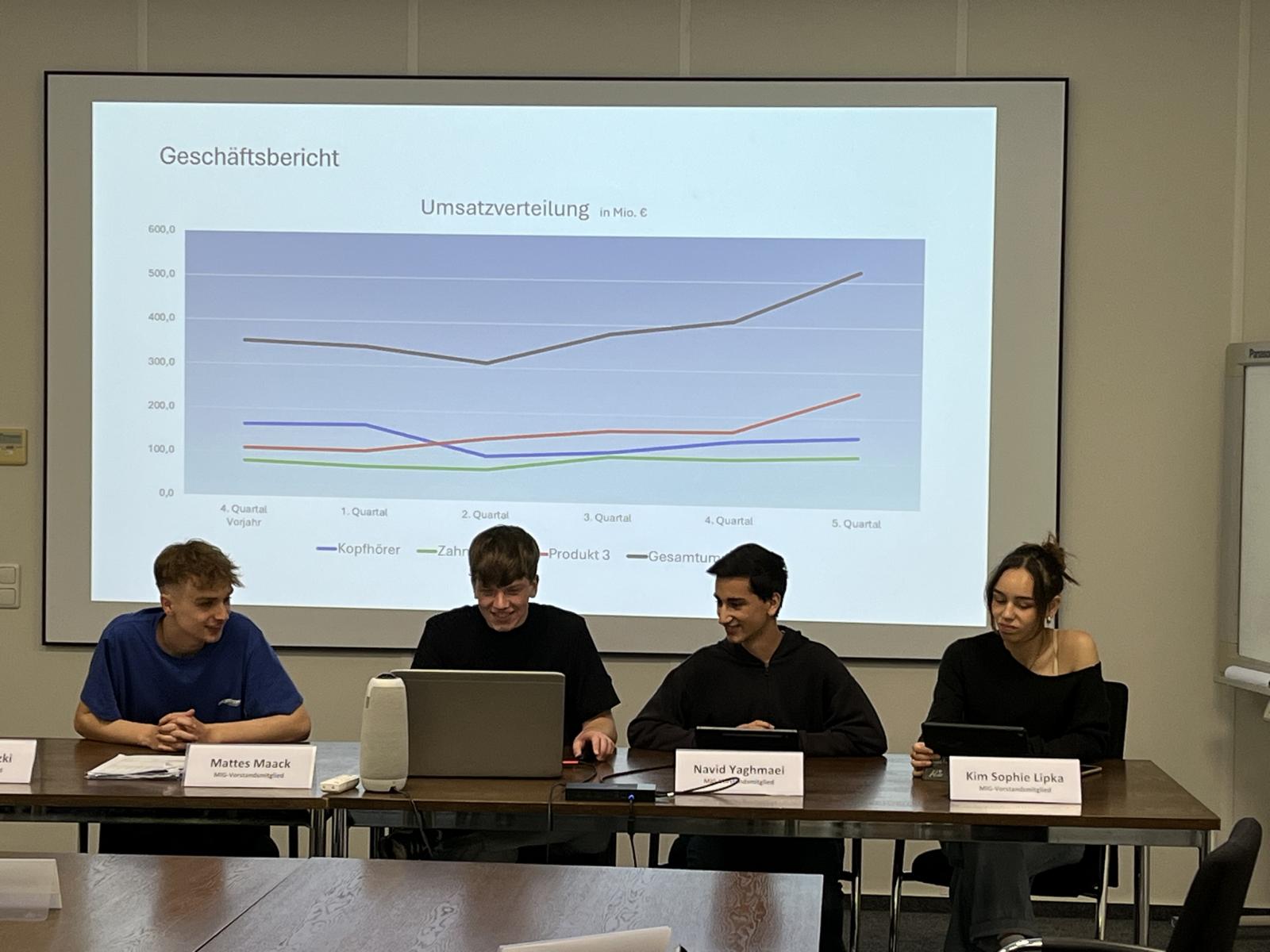 Als NOXOS AG, Beyond AG und Vionex König Tech AG mussten von unseren Elftklässlern über mehrere Geschäftsquartale hinweg unternehmerisch sinnvolle Entscheidungen in den Bereichen Absatz, Produktion, Personal, Einkauf und Finanzierung getroffen werden. Die Zielsetzung war klar: Besser zu sein als die Konkurrenz!