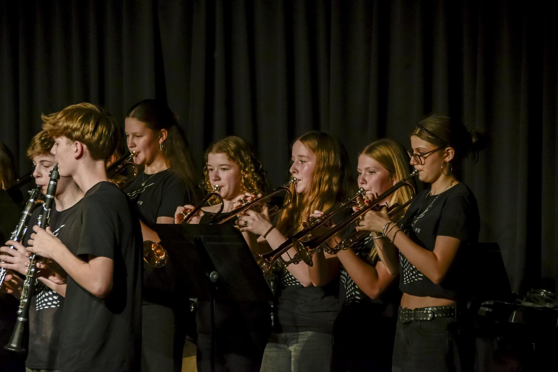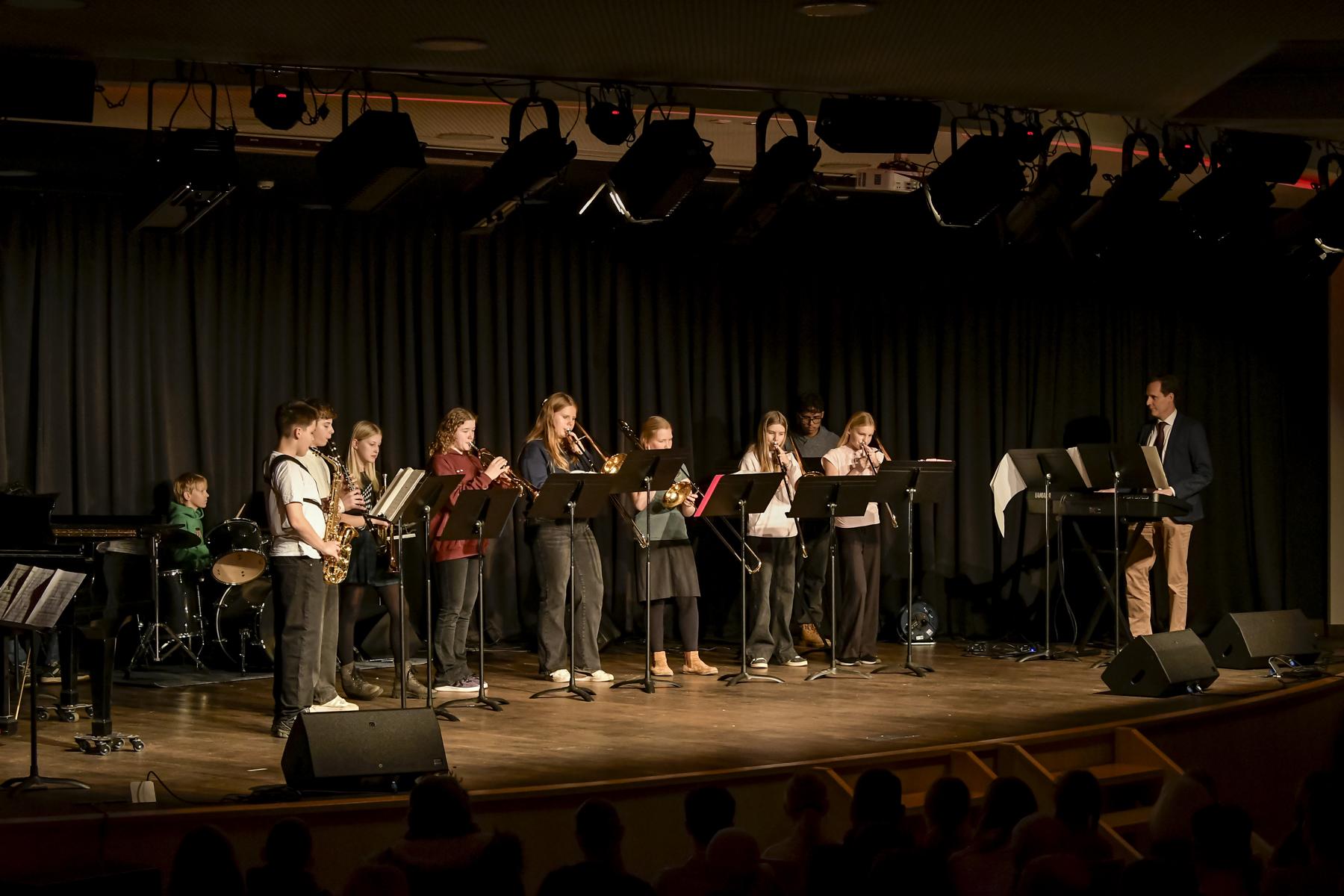 Die Bläserklasse 6b des BRG eröffnete den Abend mit einer Darbietung von Jazz, Pop- und Rockklassikern. Ihr Talent und ihre Hingabe beeindruckten das Publikum von Anfang an und legten den Grundstein für einen gelungenen Abend. Anschließend trat die Bigband der Wilhelm-Raabe-Schule aus Lüneburg auf und präsentierte Jazz-Standards auf höchstem Niveau. Mit ihrer Leidenschaft und ihrem musikalischen Können zogen sie die Zuhörer in ihren Bann und sorgten für begeisterte Reaktionen.