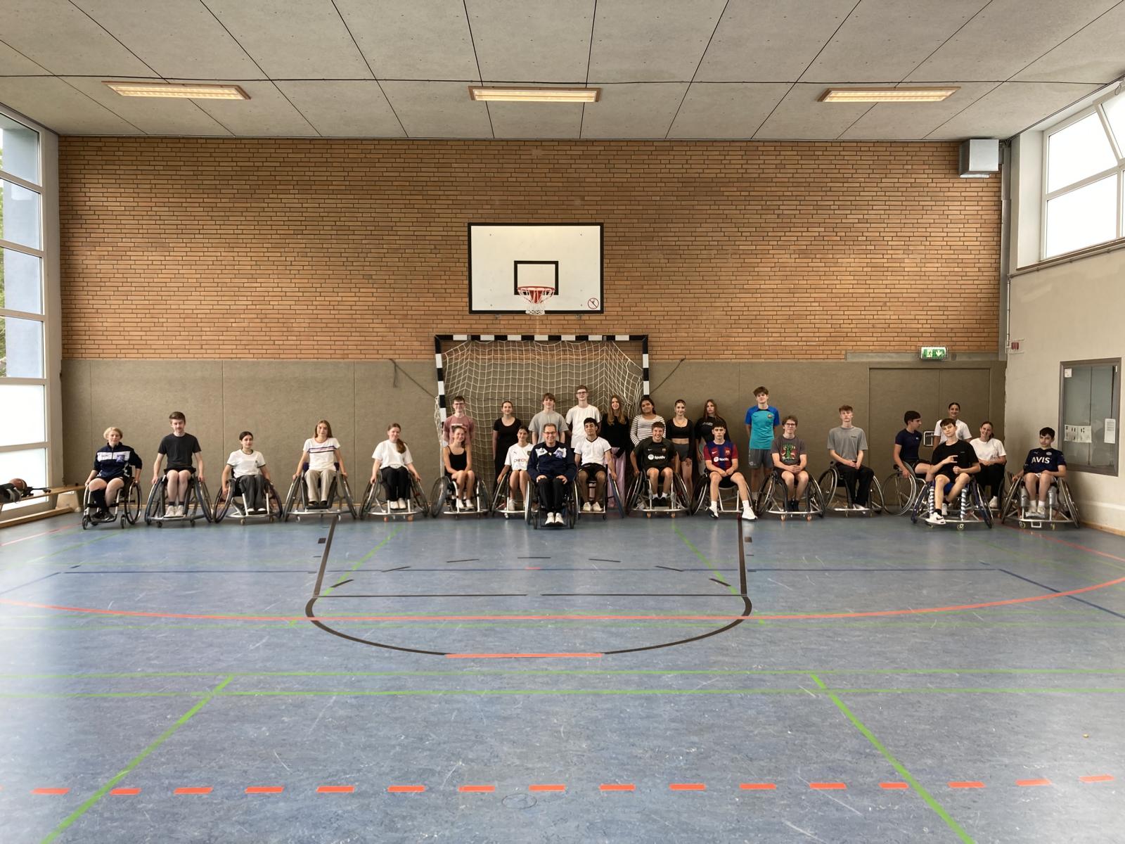 Am 13.06.2024 besuchte uns der RBV Lüneburg unter der Leitung von Thomas Löffler und brachte Schülerinnen und Schülern aus dem 10 und 11 Jahrgang den Sport des Rollstuhlbasketballs näher. Die beliebte Sportart ist nicht nur barrierefrei, sondern auch inklusiv und offen für alle Geschlechter. Ob Fußgänger oder Rollstuhlfahrer, Frauen oder Männer – hier dürfen alle in einem Team antreten.